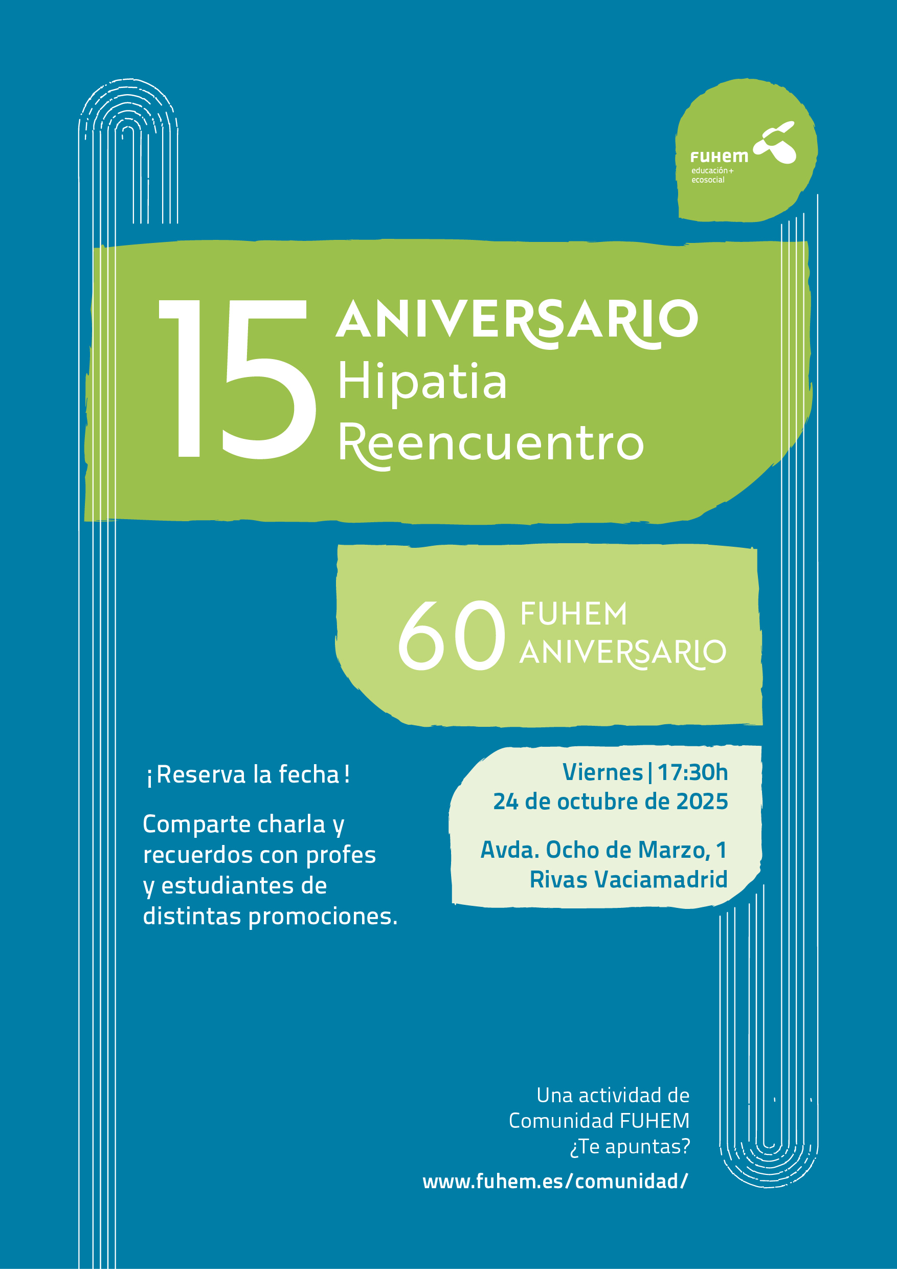 En 2025 coinciden varios aniversarios importantes: el de Hipatia, que cumple quince años ofreciendo su proyecto educativo, y el de FUHEM, que cumple sesenta.